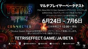 - 6月24日(木)より、PlayStation 4、Epic Gameストアで『テトリス エフェクト』、Xbox Series X|S、Xbox One、Microsoft Store PCで『テトリス エフェクト・コネクテッド』をお持ちのユーザーを対象とした、オーナーズ ベータテストを開催します。