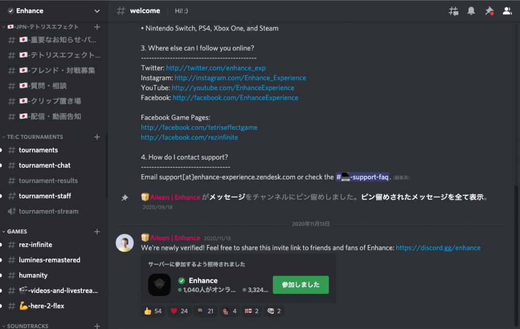 エンハンスでは、プレイヤー同士の交流や開発スタッフと直接コミュニケーションが取れるよう、Discordサーバーを用意しています。