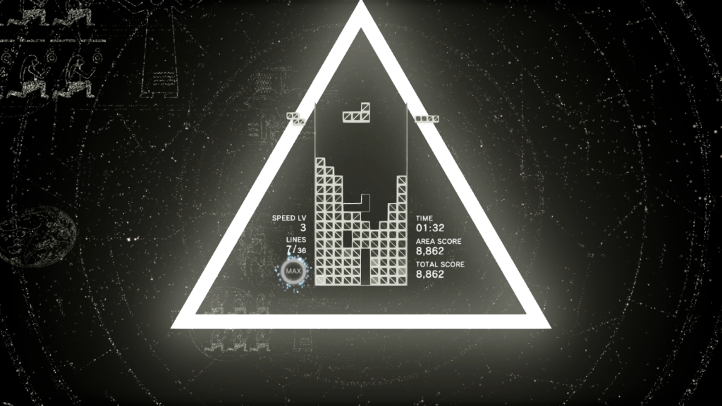 プレイヤーが『テトリス』のプレイ後に、映像や思考、さらには夢の中にもテトリミノ(テトリスのブロックの名称)のイメージが表れる実際の現象※にちなんで名付けられた本作。美しく幻想的な3Dの世界とともに、魔法のような不思議な没入感を増幅します。音楽、背景、サウンド、特殊効果、テトリスブロックの落下まで、すべてがプレイヤーの操作に完璧にシンクロし、脈打ち、踊り、光り輝き、炸裂します。